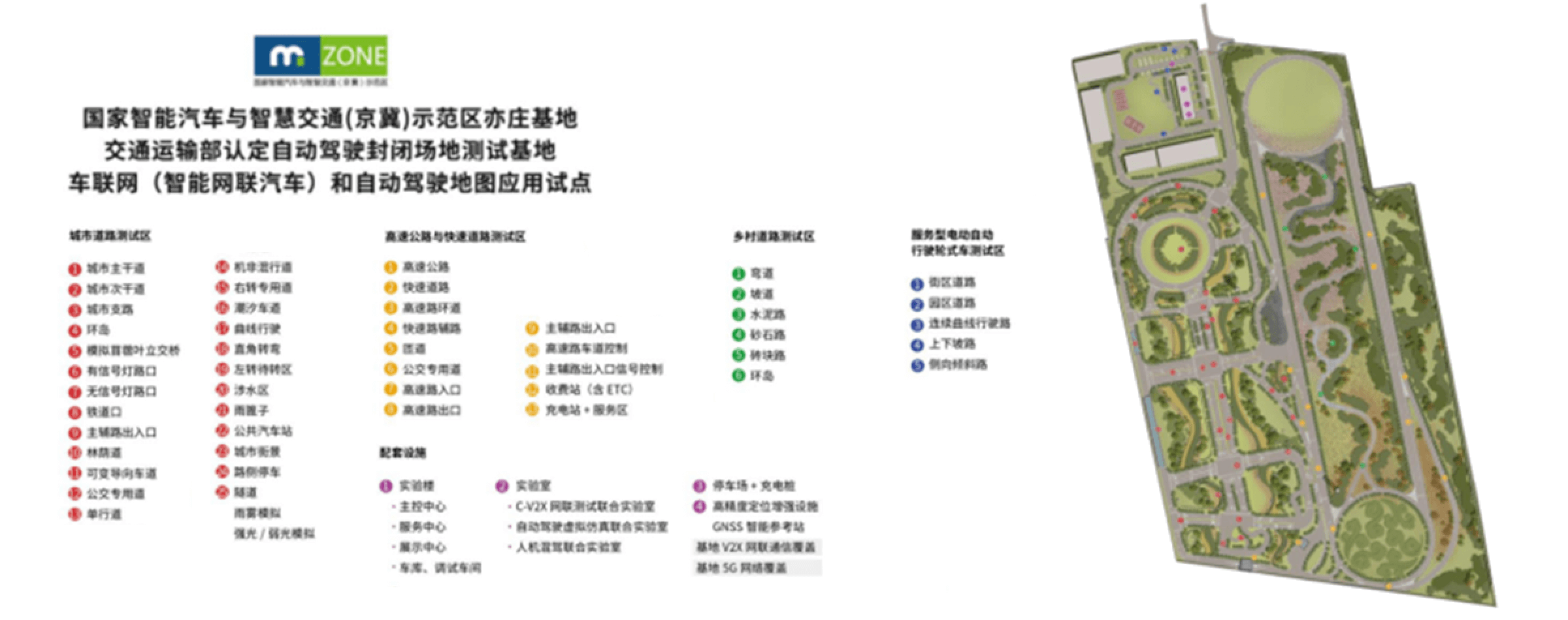 亦庄基地建设有能够满足国际、国家标准要求的测试场地及配套设施设备,并引进业内专业技术人员,依据行业标准完成前车预警(FCW)、自动紧急停车(AEB)、车道保持预警(LDW)等高级驾驶辅助(ADAS)及自动驾驶功能的测试,以及满足自动驾驶车辆不同层面的技术研发和试验验证需求。